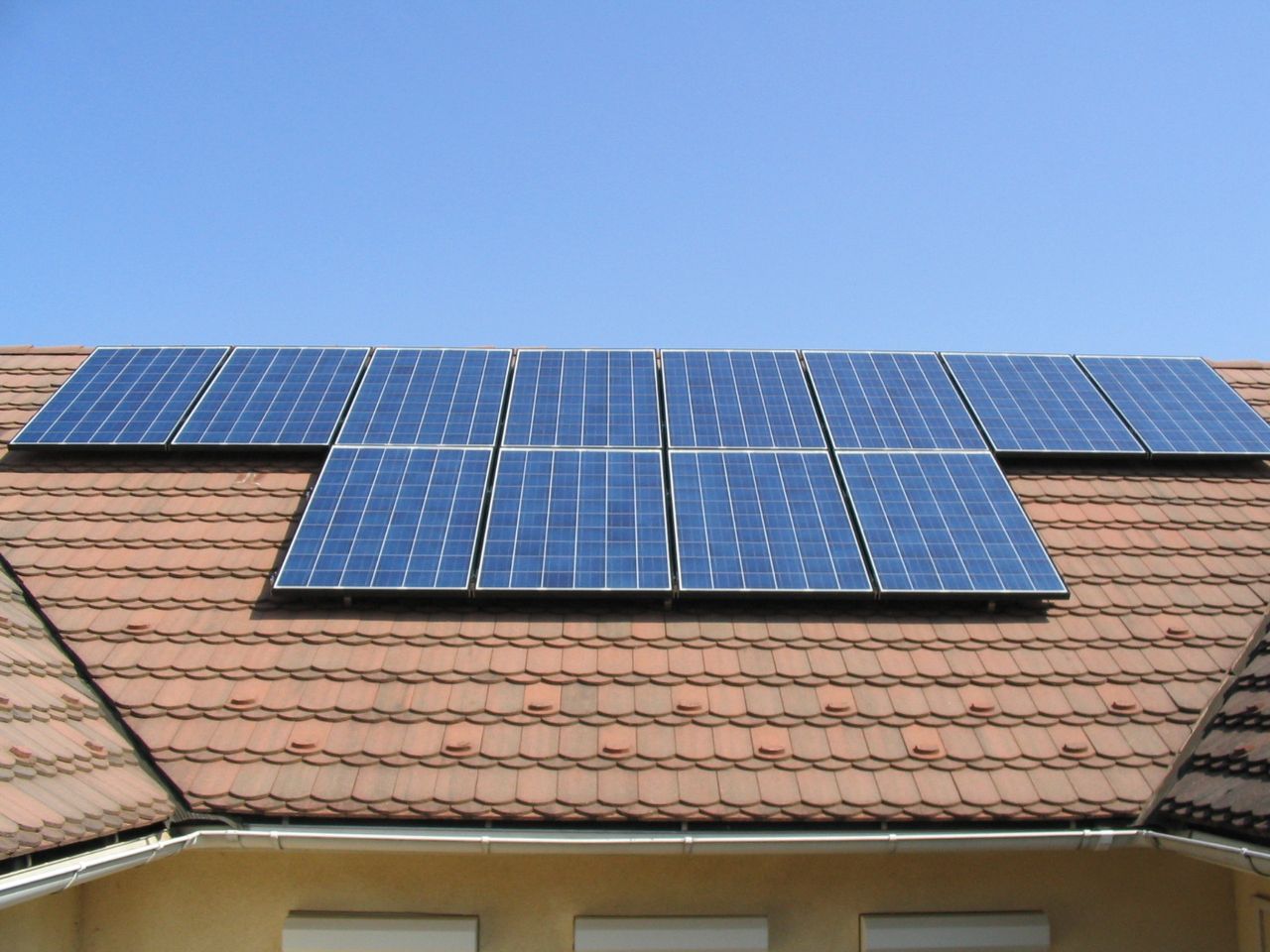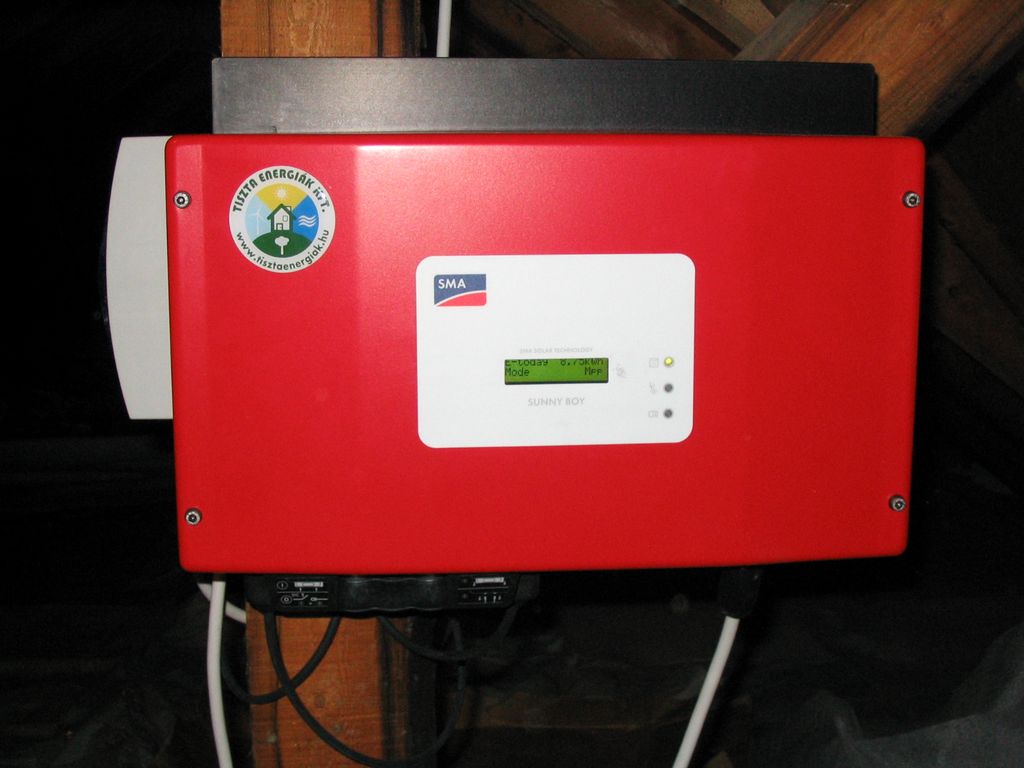 A napelemes rendszer 12 db LG 220P1C polikristályos napelem modulból áll. A napelem modulok által megtermelt villamos energiát egy SMA SB2500-as