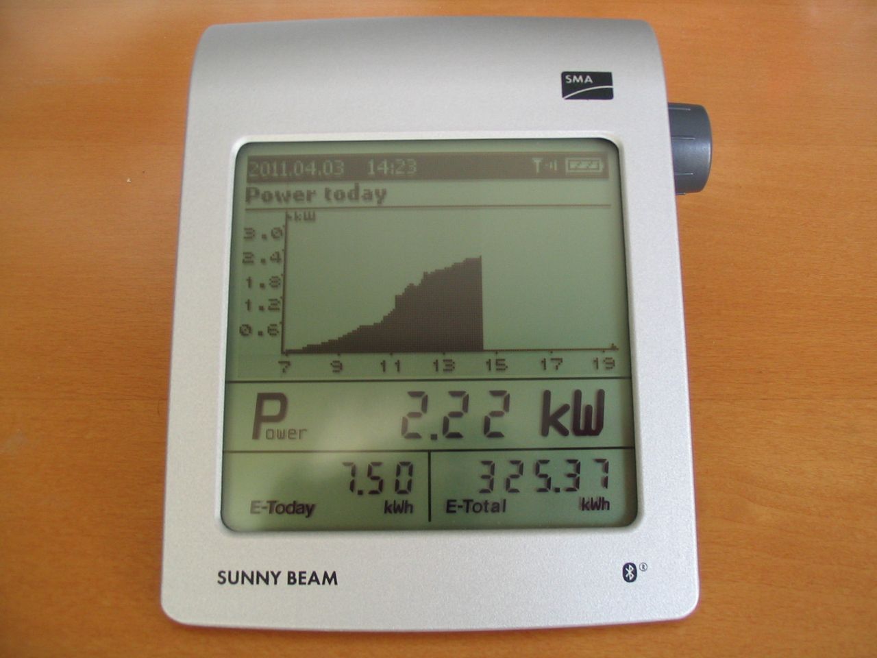 Az adatgyűjtést egy SMA Sunny Beam bluetooth-os eszköz végzi, amely USB kábelen ad át adatot a számítógépnek.